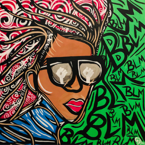 This painting symbolizes the spontaneous coming together of the thousands of diverse fellow New Yorkers who – despite the threat to their health and risk of arrest--courageously marched in solidarity with the "Black Lives Matter" protesters and who continue to do so today. The diversity of the marchers is conveyed by the painting’s profusion of colors and shapes. And the fusion of those colors and shapes that tightly fills the entire canvas, become a powerful, unified whole -- in short, a force for a long overdue change in policing policy and practices.